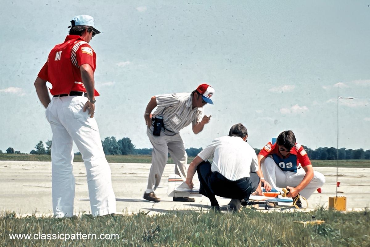 6. the FAI bronze medal to third place. 7. the AMA trophy to third place. 8. the AMA trophy for fourth place. 9. the AMA trophy for fifth place. 10. the AMA trophy to the sixth, provided 6 participants flew in the fly-off. I will now try to describe the development of the World Championship in chronological order, at least where we are particularly interested. 29 June On the huge grounds of the Springfield Municipal Airport near Springfield/Ohio, the venue for the 10th World Championship in RC Aerobatics, two launch sites have been prepared for the RC pilots about one kilometre apart, which are already occupied by training pilots early in the morning.
